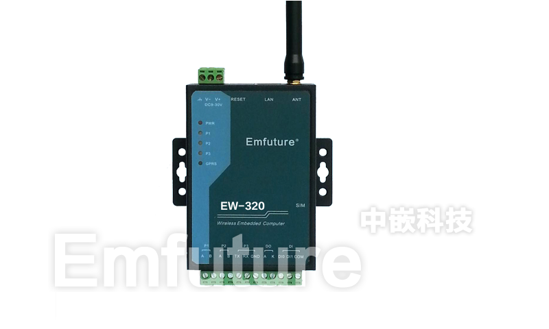 EW-320-T: 3G工业级无线嵌入式计算机、400MHz,1网口、4串口(4个RS485)、1个DI及1个DO